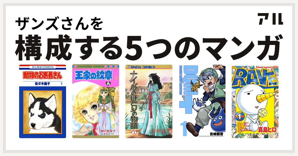 ザンズさんを構成するマンガは動物のお医者さん 王家の紋章 ナイルのほとりの物語 ドラゴンクエストモンスターズ Rave 私を構成する5つのマンガ アル